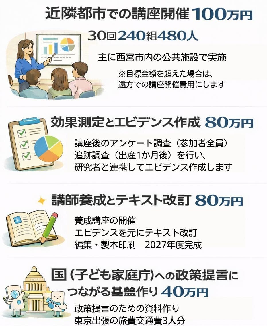 2026/02/20 00:38関西学院大学教育学部 教授 橋本真紀子どもが生まれると親になるだけでなく、パパ、ママとして家族になり、その子の親として社会とのつながりも始まります。ちょっとした見通しがあれば安心。パパ、ママとしてパートナーになる。子育て家庭として社会とパートナーになる。パートナーシップ講座はそんな子育て家庭のスタートアップを支えてくれます。 −−−−−−−−−−橋本真紀さん応援メッセージ本当にありがとうございます。兵庫県では子ども子育て会議の委員としてご一緒したり、西宮市では子ども子育て支援者交流会を共同企画したりと本当にお世話になっております!本プロジェクトでは、共同研究者としてご協力いただくことになっています。現場の声、当事者の声をもっとも大切にしながら、研究を進めてこられたまき先生を尊敬しています!これからも宜しくお願い致します。−−−−−−−−−−これから親になる人たちへ私たちの経験をバトンしましょう!クラウドファンディング挑戦中です!ぜひ応援してください! もっと見る