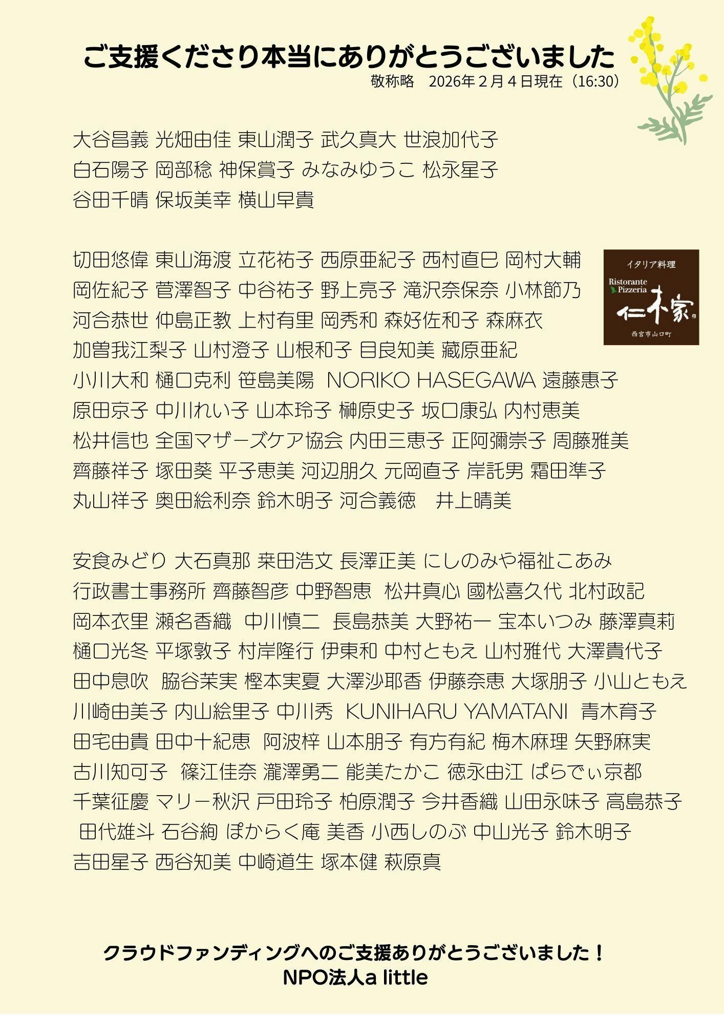 2026/03/07 17:55クラウドファンディングへのご支援ありがとうございました。おかげさまで58%達成しました!最終日の3月22日日曜日まであと2週間となりました。まだまだ広げていただきますよう宜しくお願いいたします!! もっと見る