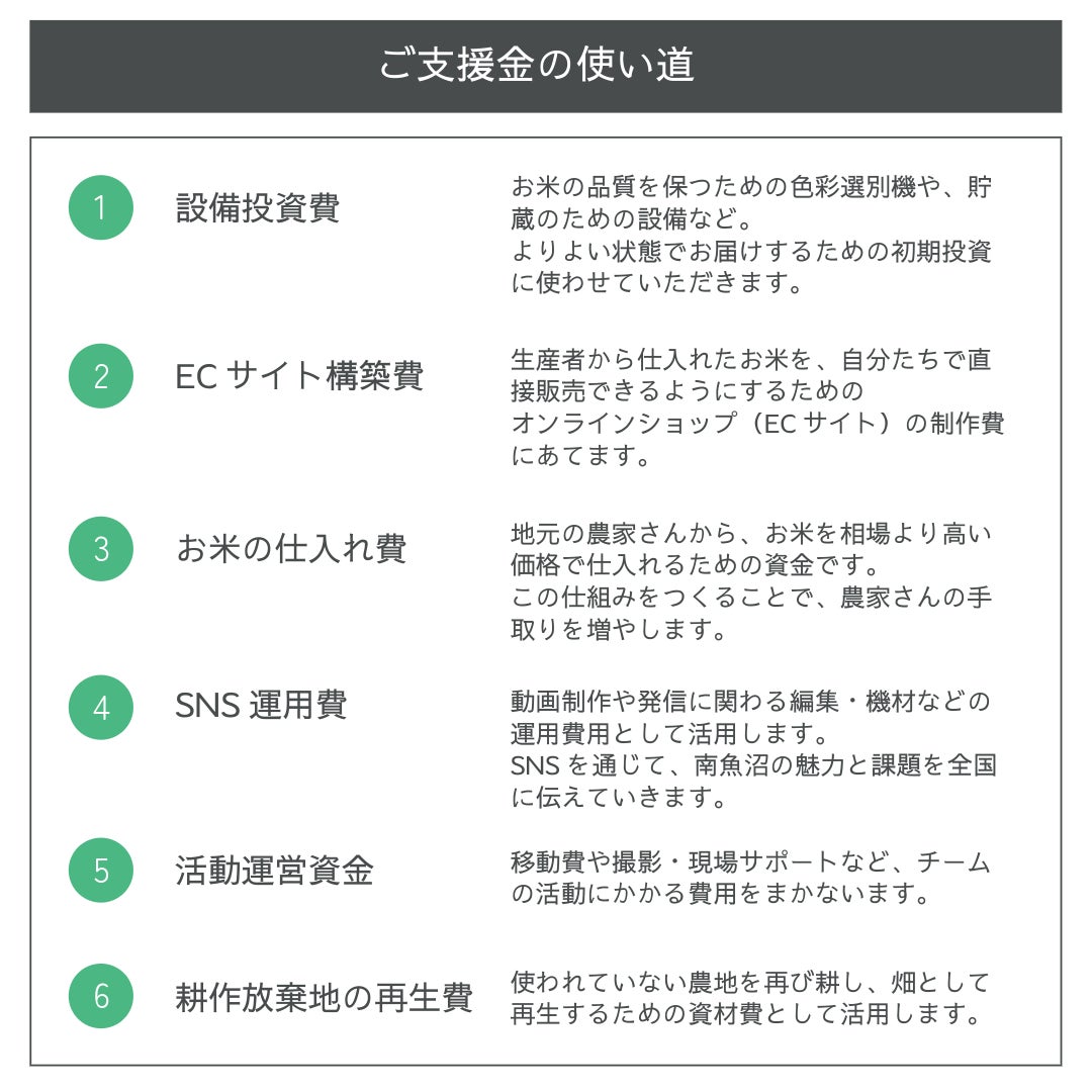 「南魚沼の農業を未来につなげる活動」のために活用させていただきます。