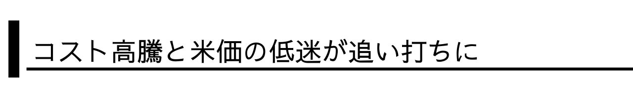 さらに追い打ちをかけるのが、コスト高騰と米価の低迷です。