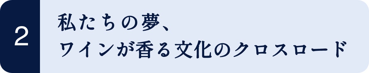 ワイナリーが、人と文化が交差するクロスロードになる。それが私たちの描く、ささやかで、けれど壮大な夢なのです。