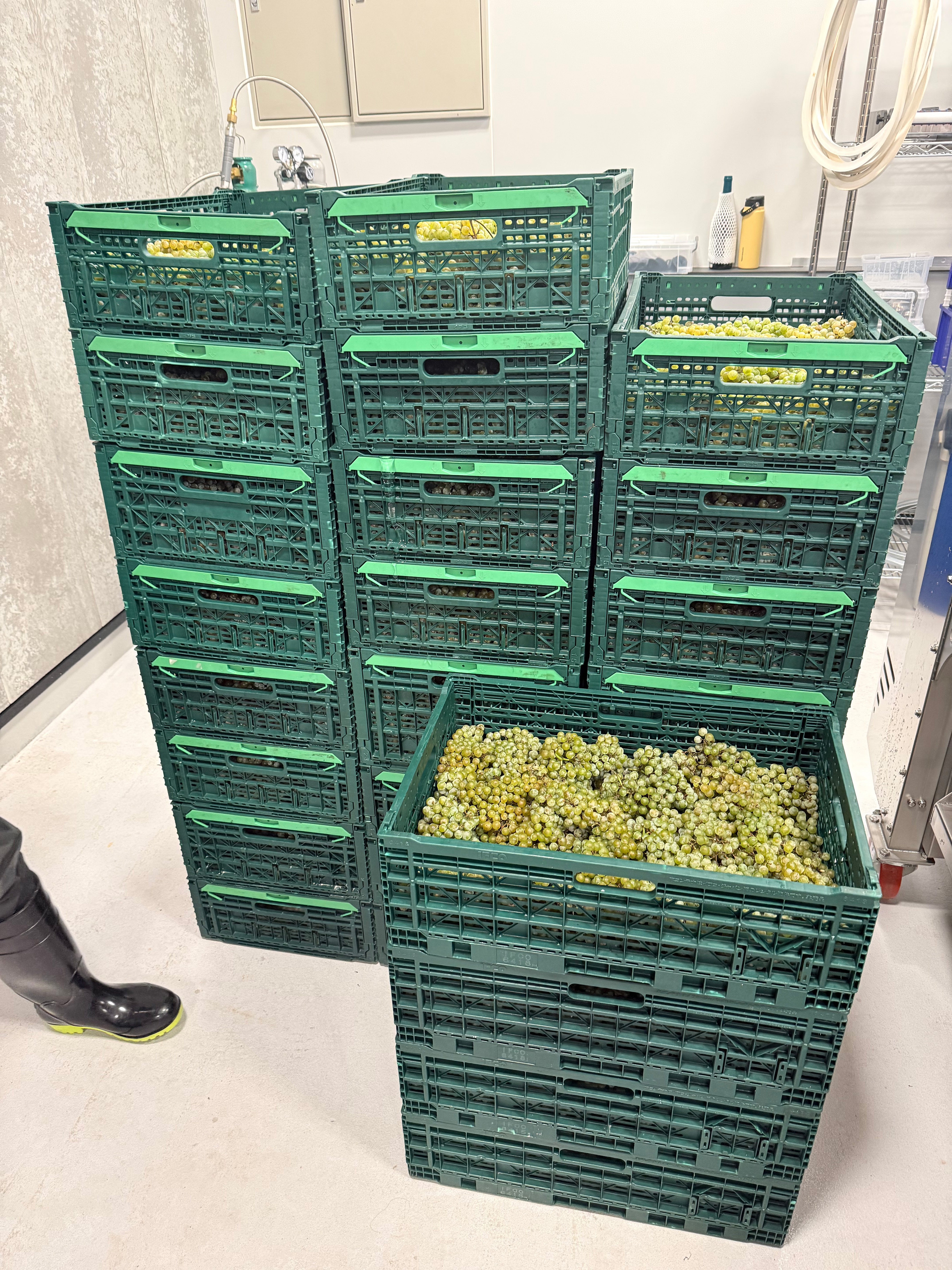 千葉ワイナリー 初醸造のブドウ2025年10月8日。文化や観光、福祉にも広がる可能性を感じながら、免許取得のその日、午後3時にさっそく醸造を開始。