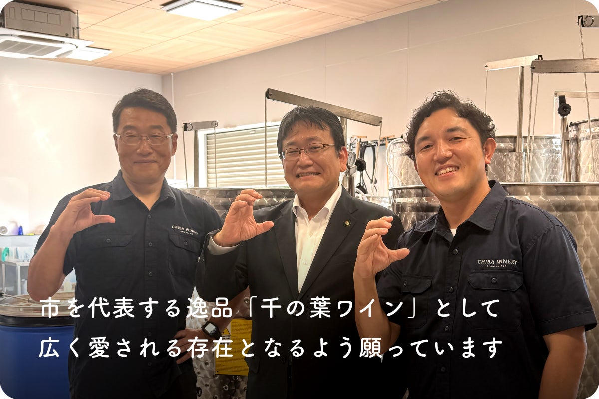 「千葉市長の神谷俊一です。2026年、千葉市は開府900年を迎えます。この歴史的な節目に市内初のワイナリーが誕生することに胸を高鳴らせています。市を代表する逸品「千の葉ワイン」として広く愛される存在となるよう願っています」
