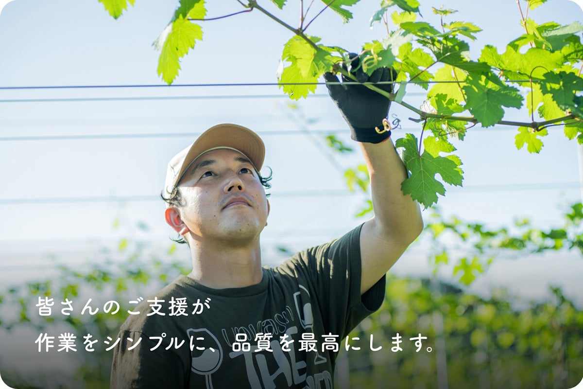 ブドウ栽培も同じです。一文字短梢仕立てという手法や雨よけの工夫で、作業を単純化し、農薬の使用も最小限に。夏の厳しい作業のために空調服を用意するなど、働く環境そのものをデザインしています。