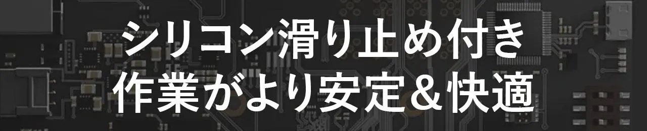 本体中央部にはシリコン製の滑り止めパッドが付いており、ボールペンのような持ち方が可能です。より正確な操作を実現し、作業ミスを防ぎます。