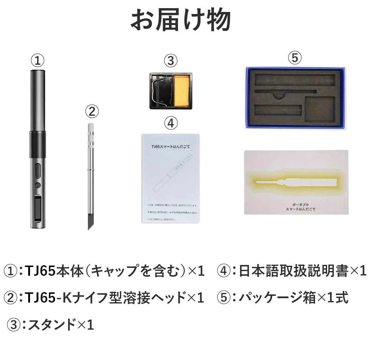 「TJ65」は優れた加熱速度と精確な温度維持機能を備え、65W高出力を持つスマートはんだごてです。今までのDIY・修理・メンテナンス体験を一新させる効率的なポータブルはんだごてです。電子製品を修理する方やDIYが好きのあなたが絶対見逃せないツールです!
