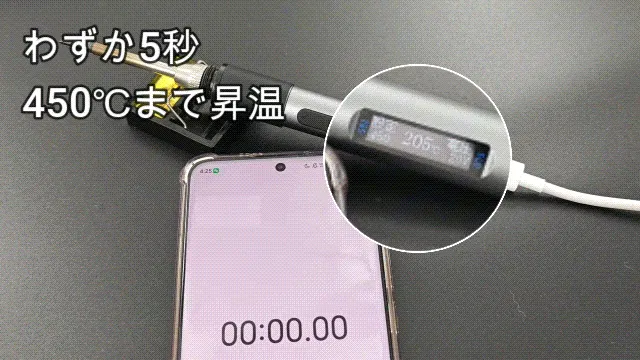 ・USB Type-C給電、PD/QC対応、65W高出力、急速加熱、はんだを一瞬で溶かす!