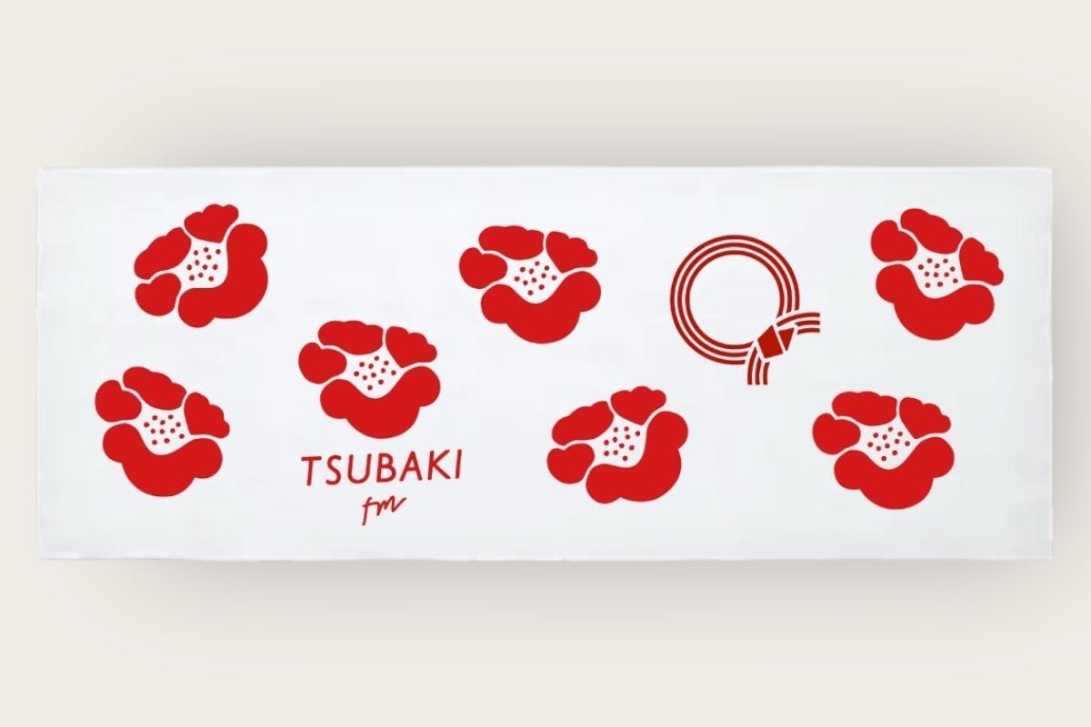 江戸時代から脈々と受け継がれてきた職人の手仕事による逸品をカジュアルに使っていただけるよう、TSUBAKI FMのロゴをはいして、ポップなデザインに仕上げました。サイズ:34cm x 93cm