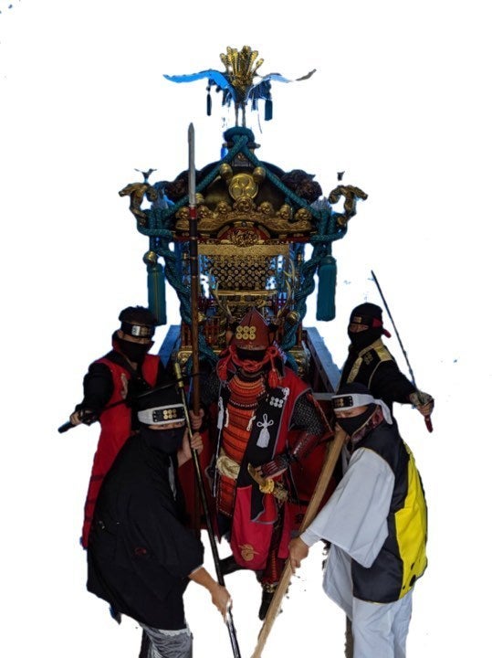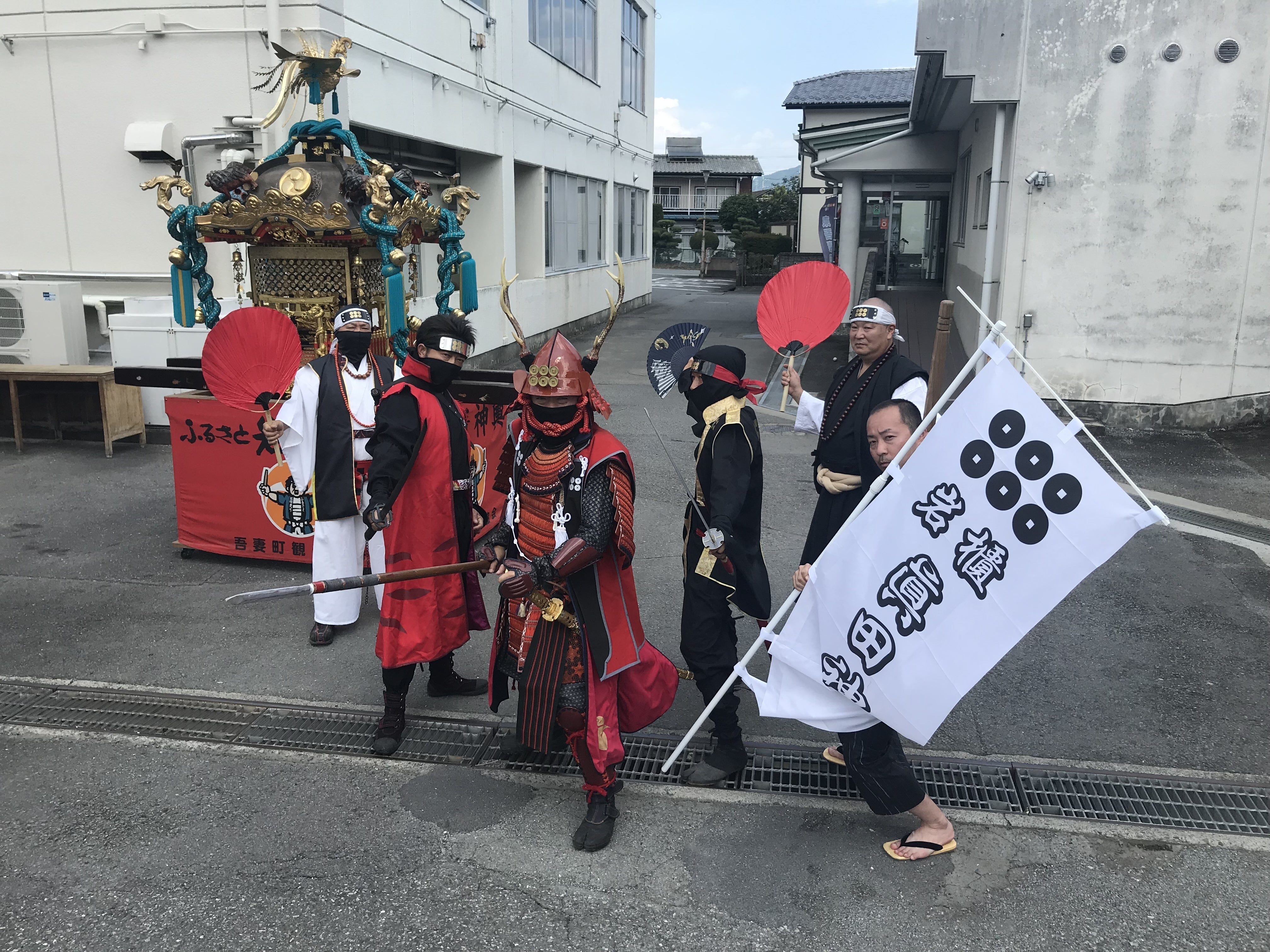 今回、20数年間、町に眠っていた立派な御神輿を蘇らせていただく事になったのは、今まで甲冑を着て各地域で演武を披露させていただいた事が、きっかけになります。