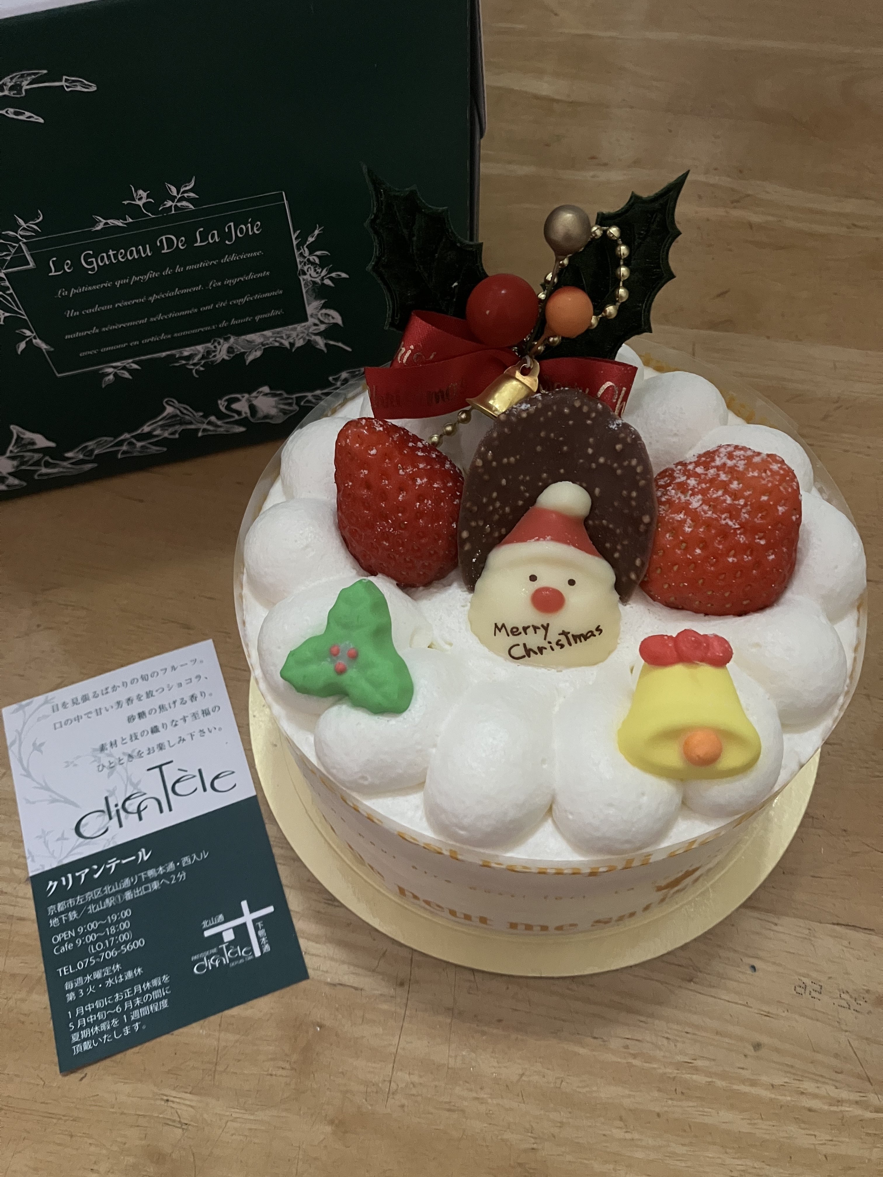 クリアンテール様のクリスマスケーキ、子供達と当日夜に蝋燭を立てて音楽を鳴らして頂きました!とても美味しくて、またお祝いの時にはクリアンテールさんにケーキ買いに行こうね、と約束しました。ありがとうございました。