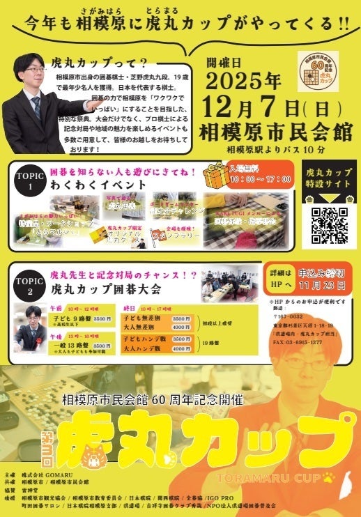 虎丸カップさがみはら囲碁大会2025公式ページ:https://gomaru.net/toramarucup2025/#s1