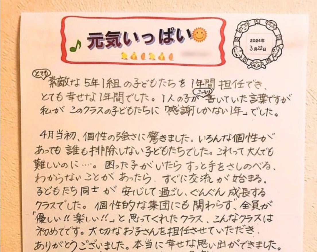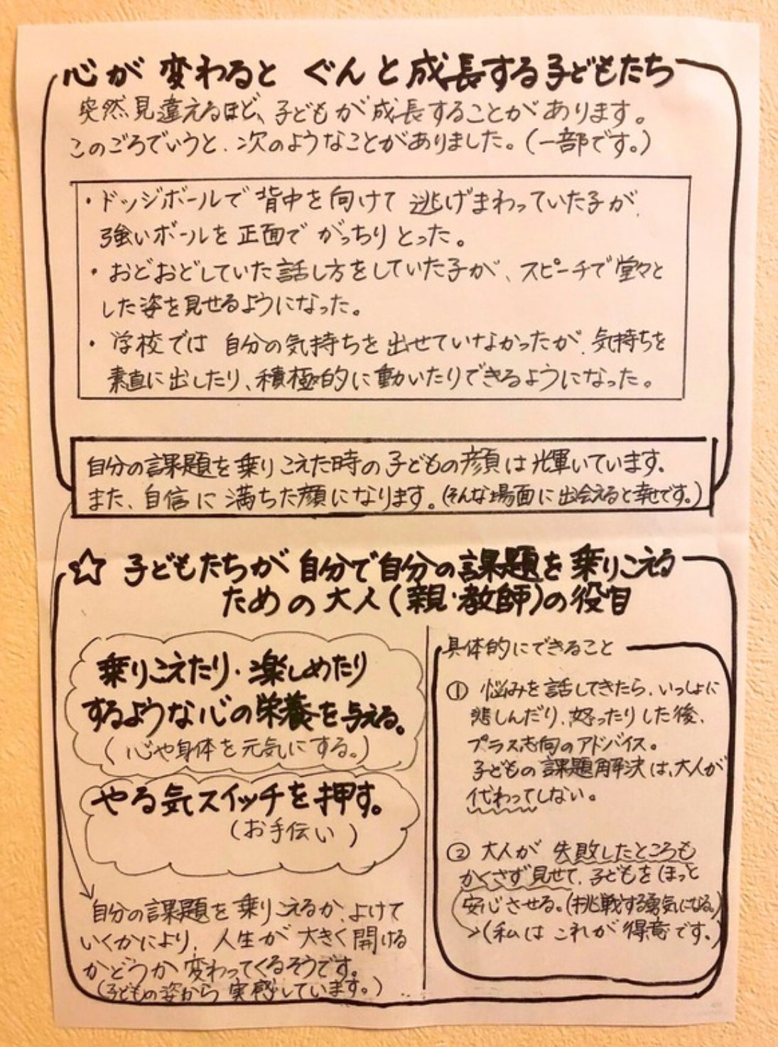 私は教師時代、親御さんにメッセージを伝えるために「学級通信」を活用してきました。教室での子どもたちの様子に本の内容や名言の紹介を添えながら、伝えたい思いを手書きで綴ってきたのです。