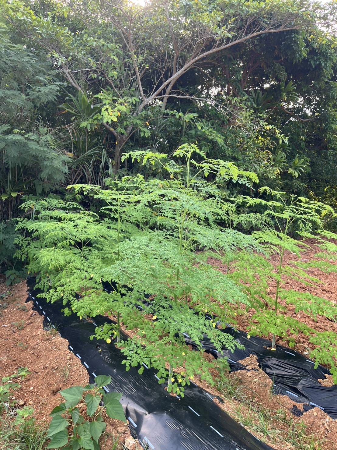 モリンガの驚くべき生命力と、奄美の温暖な気候、そして太陽の恵みのおかげで、ぐんぐんと成長し