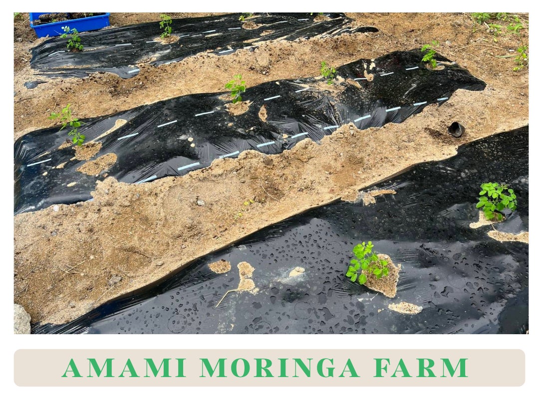 その想いひとつで農地を契約し、今年から奄美大島でモリンガの栽培テストを始めました。手探りで始めた農作業はすべて手作業。泥まみれになりながら、汗だくで草を刈り、苗を植え、太陽の下で少しずつ畑が形になっていく。その過程がたまらなくうれしくて、気づけば笑顔になっていました。