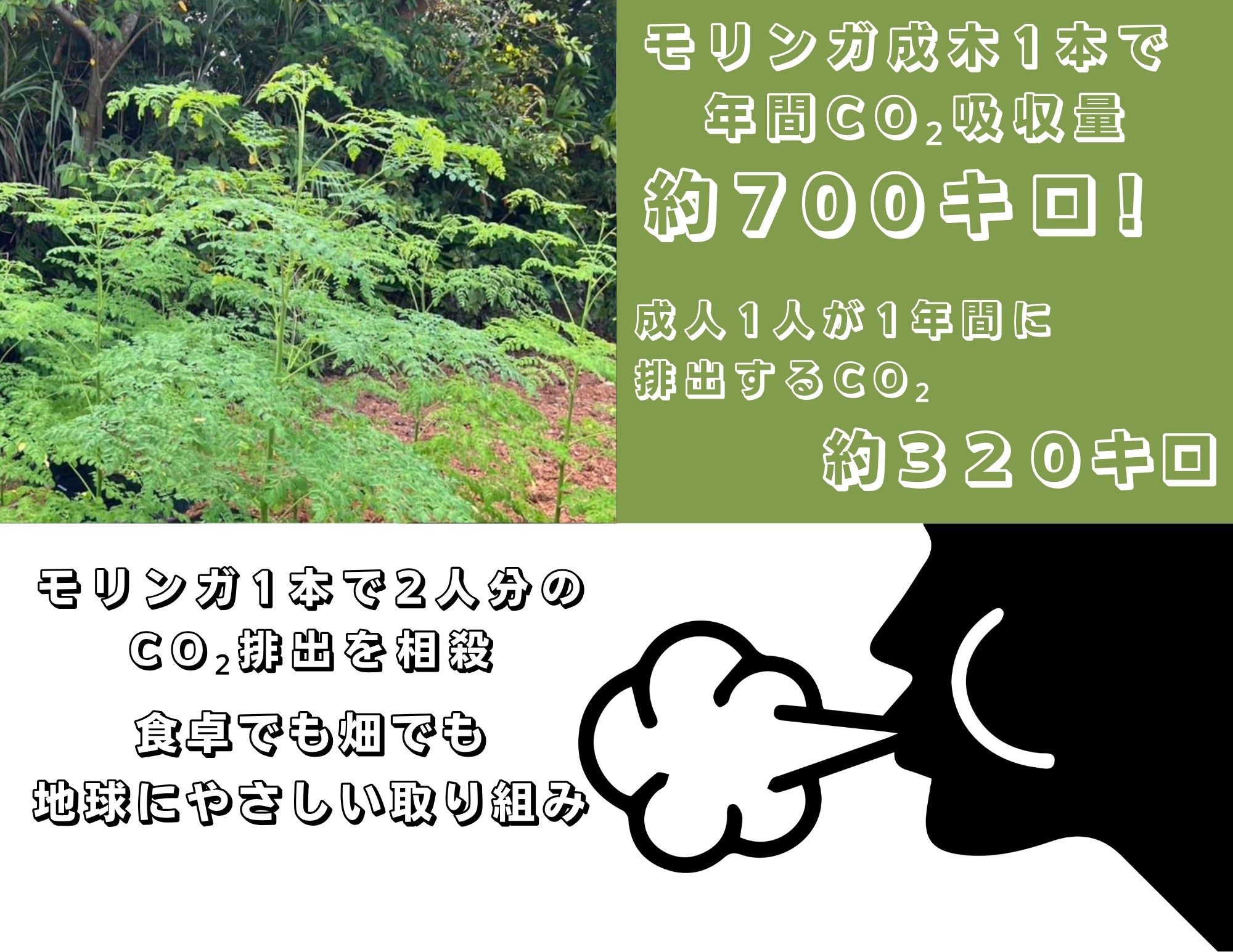 モリンガは栄養豊富なだけでは無く、成長がとても早くたくさんのCO₂を吸収し、土壌改善にも役立つ植物として国内外で注目されています。