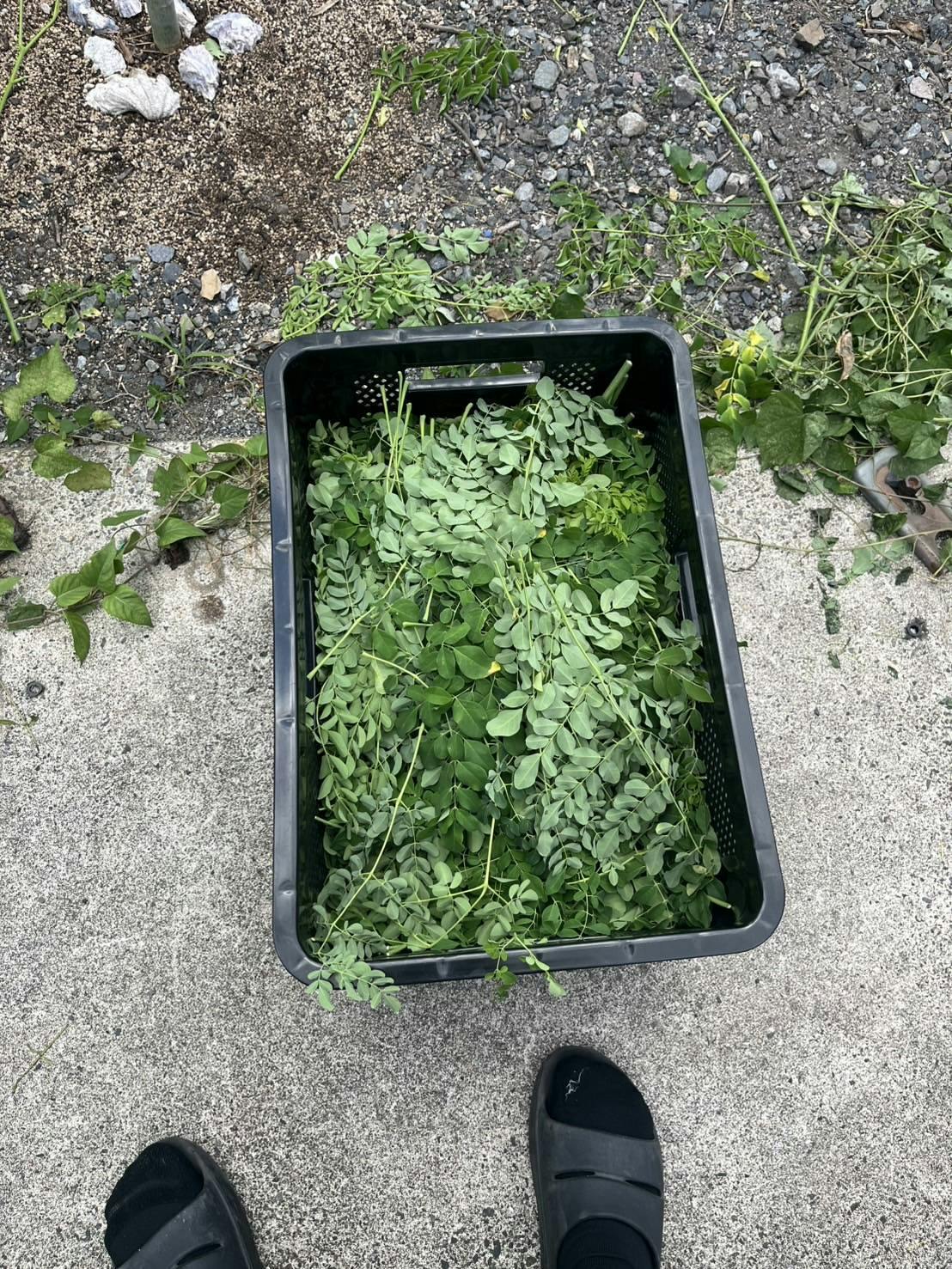 そこに2,000本のモリンガを植え、目標は乾燥後で約1トンのモリンガパウダーを収穫すること。