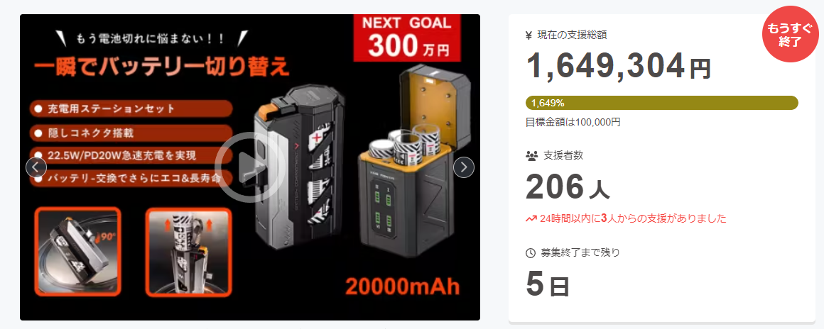「瞬速交換+4本同時充電でもう電池切れに悩まない!ステーション一体型・双方向充電器」プロジェクトへのたくさんのご支援、誠にありがとうございます。