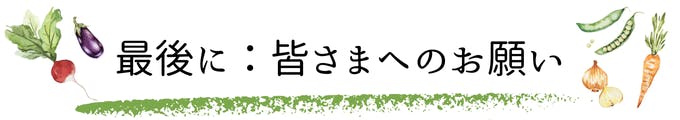 また、現在流通している野菜は収穫時期には農薬が検出されない、もしくは基準値以下となるように調整されていますが、雨で流されたり土中にしみ込んだ農薬や化学肥料による土壌汚染や地下水の汚染など長期的な影響がどの程度あるのかについては、わかっていない部分もあります。将来的な影響があるかもしれないことを考えると、全ては難しくとも、できる限り農薬・化学肥料を使わずに育てられた野菜や果物を使い、農薬を減らしていける方向を考えていきたいのです。