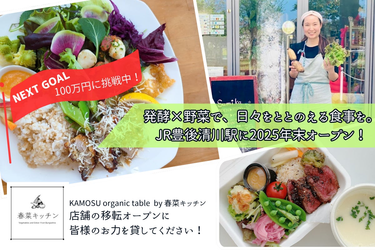 「KAMOSU organic table by 春菜キッチン」のクラウドファンディングは、単なる店舗の移転資金集めではなく、豊後大野市三重町からお隣の清川町に移転するうえで、新たな地域の方とつながり、これまで三重町の店舗にお越しいただいていたお客様にも引き続きご愛顧いただけたらという思いでスタートしました。