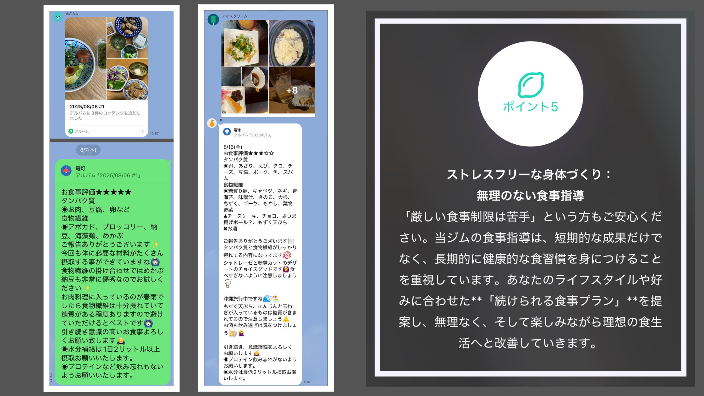お食事のアドバイスもご安心ください、トレーナーがあなたが続けられるお食事内容を考察し結果はもちろん長く続けられるお食事バランスを見つけ出します!!