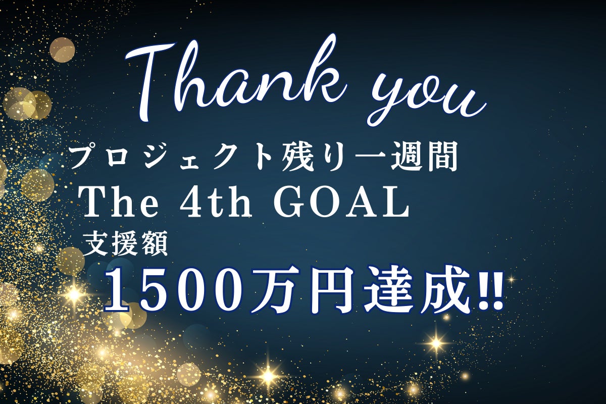 プロジェクト終了まで1週間を切り、遂に、The 4th ゴールの1500万円も達成することができました!!