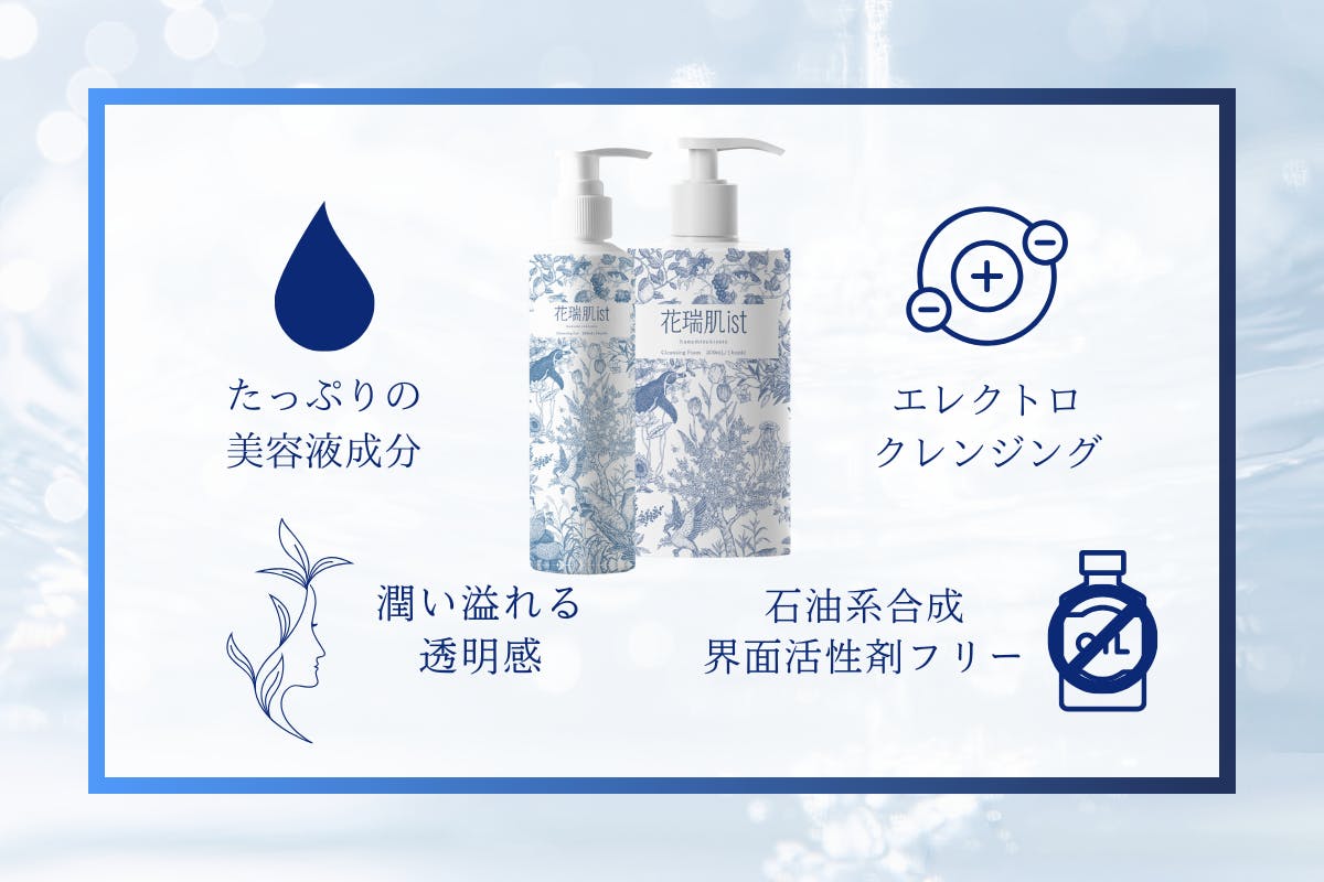 花瑞肌istクレンジングは、“落とす”と“育てる”を同時に叶える、肌と心が満たされる新しい美容時間をお届けします。