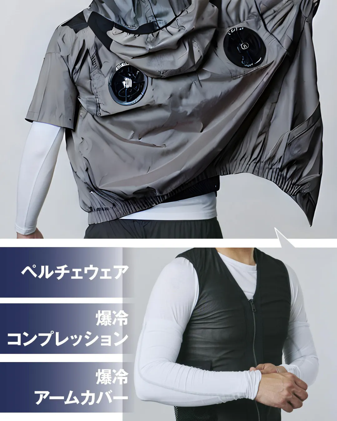 素肌でも身に着けることができる冷感ウェアと合わせれば、さらに快適に。ペルチェデバイス付きウェアと合わせても、さらに快適に。