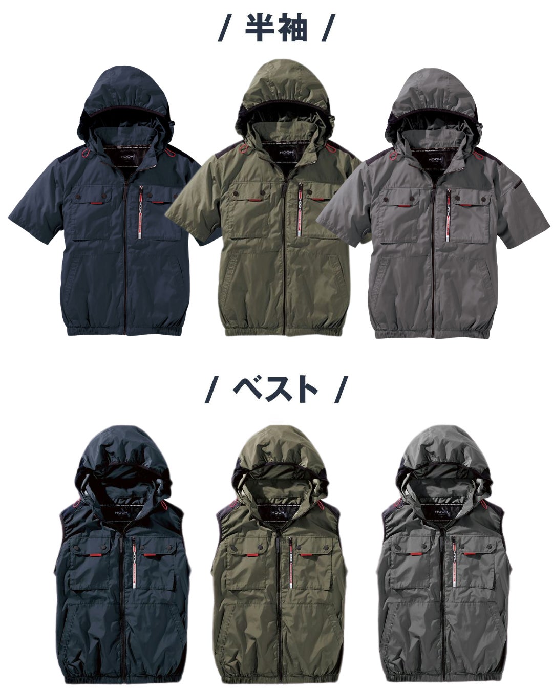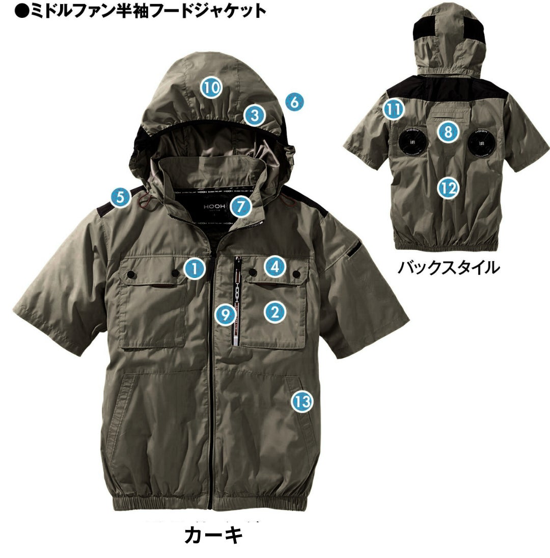 ミドルファン半袖フードジャケット