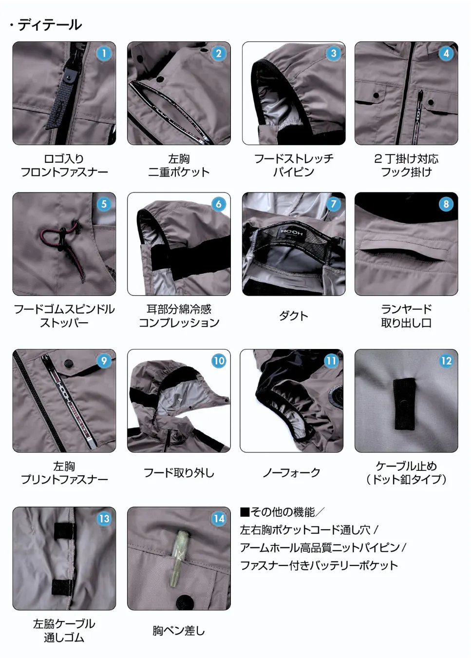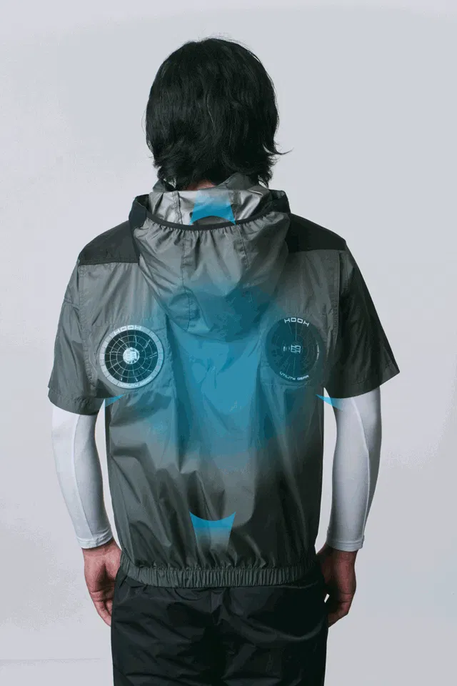 ファンの風を逃がさない裏チタンコーティング、-9℃遮熱効果。柔らかい着心地で動きやすく、屋外でも屋内でも快適に過ごすことができます。