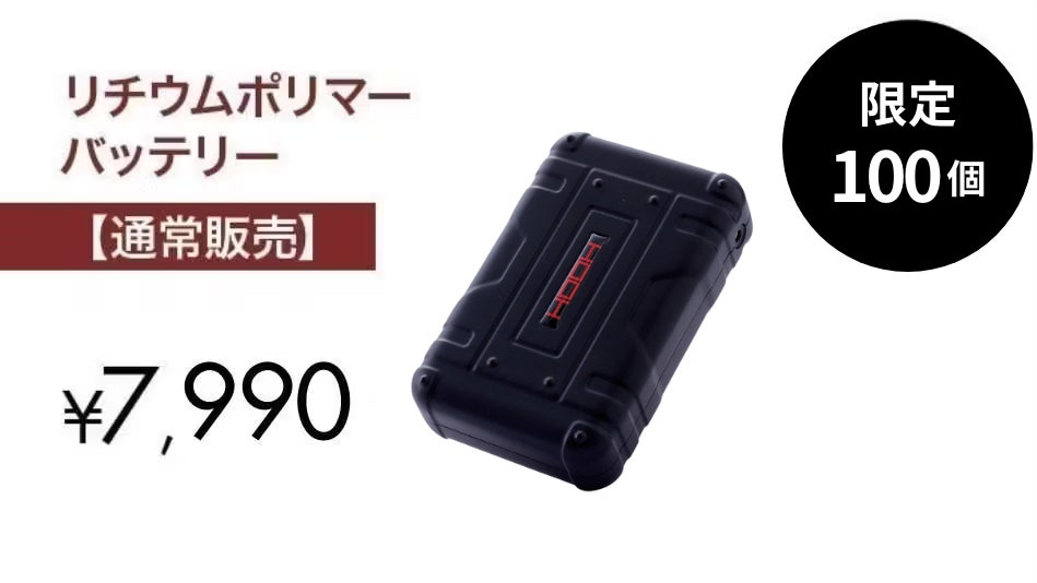 他社ウェア製品および旧モデルとの互換性は保証いたしかねますので、メーカー純正のリチウムポリマーバッテリーをご使用ください。