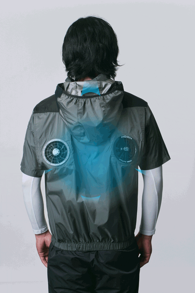 肩甲骨の下に配置された2基のファンが、首筋・脇・腰までしっかり冷やしてくれる!