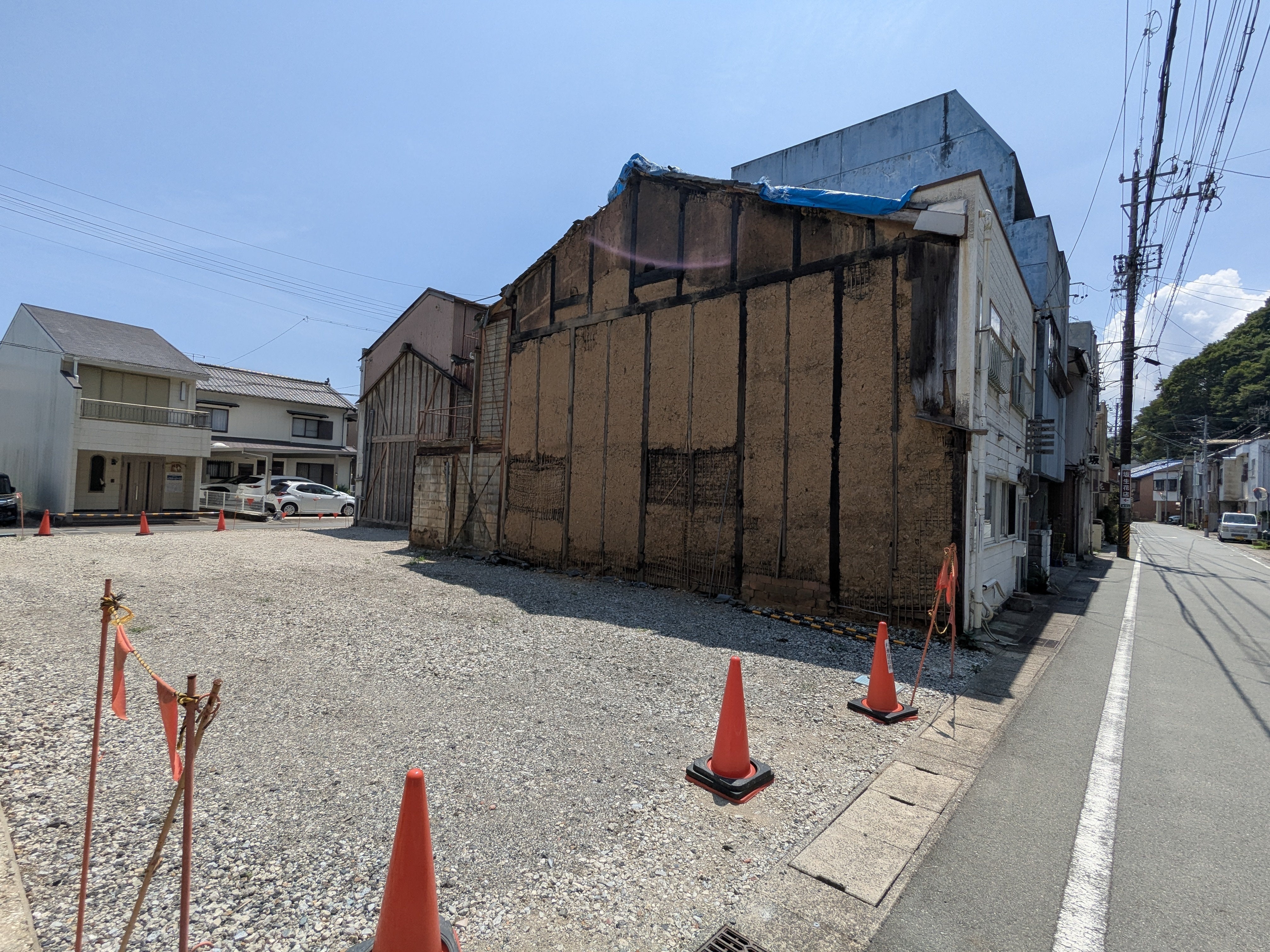 更地になったクボクリ横 外壁を共有していたクボクリは、従来より雨漏りの問題で2階部分が使えないほか管理も大変だったので、隣の危険空き家を解体する前よりクローズしており、今後の持続可能なまちづくりを目指すkiccaとしてはこのまま放置することは出来ず、責任を持って買取り、次の価値をつくることを決意しました。