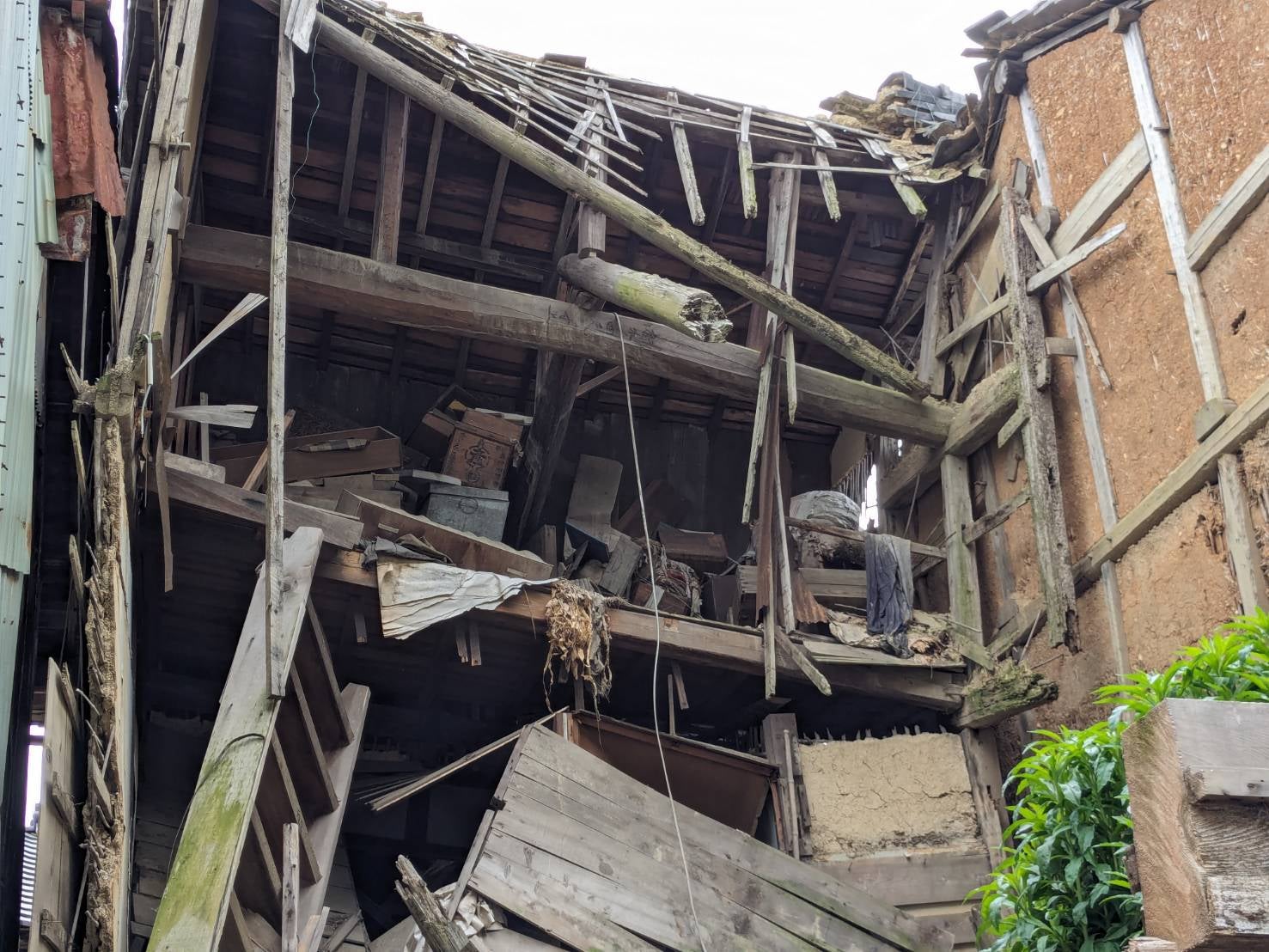 この写真は時間とともに中から溶けてしまった空き家の様子です。こうした空き家は台風や大雨といった災害により崩れてしまう危険が高く、暮らす人も訪れる人も安心安全で過ごせない町となってしまう可能性があり、私たちは危機感を持っています。