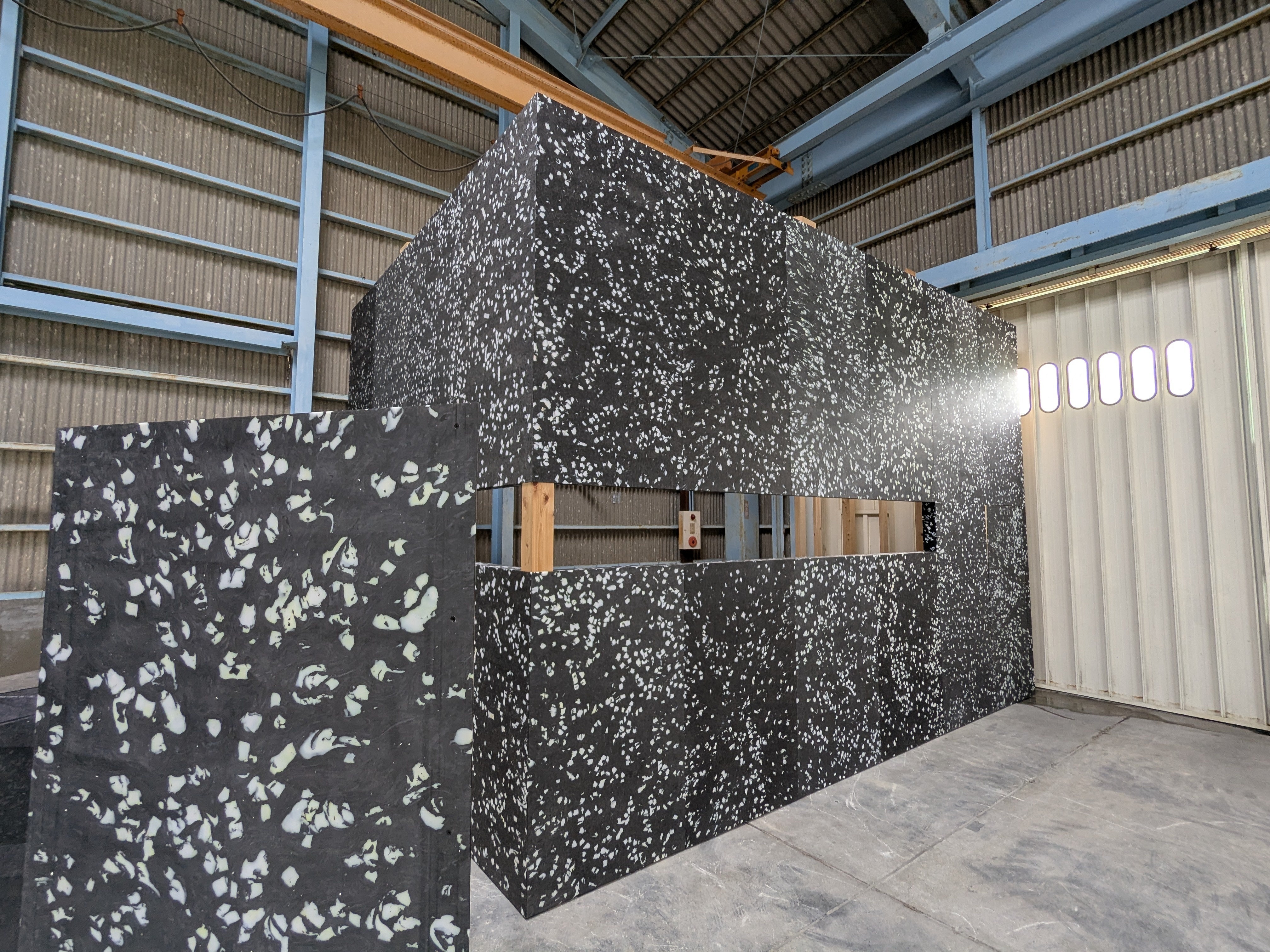 漁具をアップサイクルした素材を使用したカフェの厨房カウンター