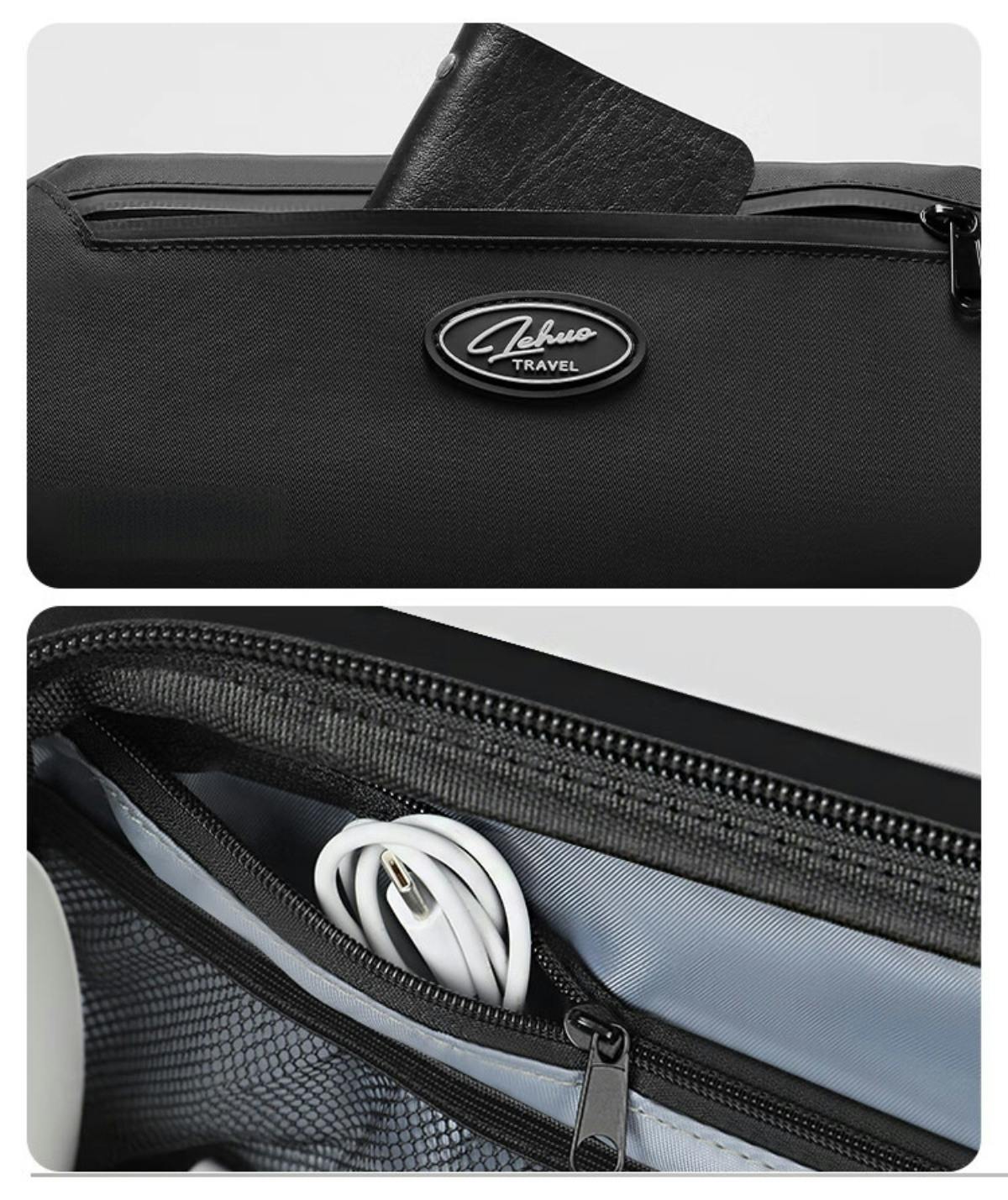 複数ポケットや内部の仕切りを活用し、マウスやUSB充電器やケーブル等をピッタリと収容できます。