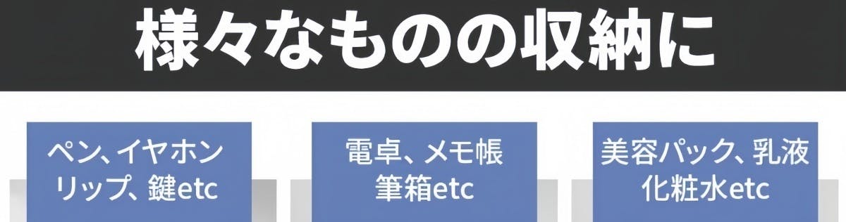 ガジェットから文具まで、スマートに収納できる仕様を追求しました。オフィスでも、学校でも、様々な用途におすすめです。