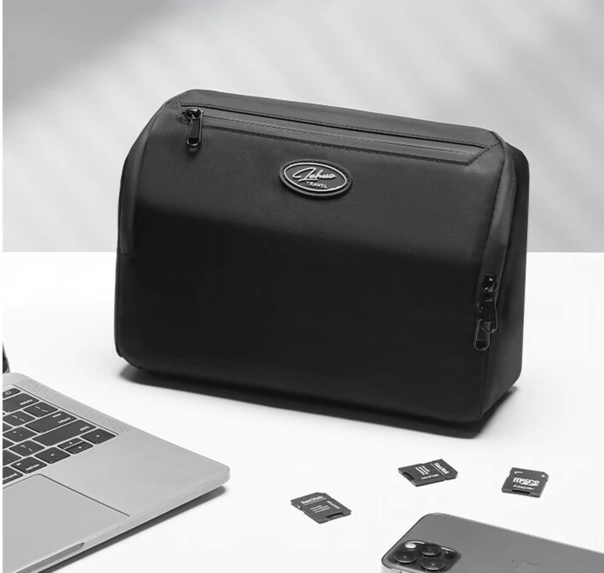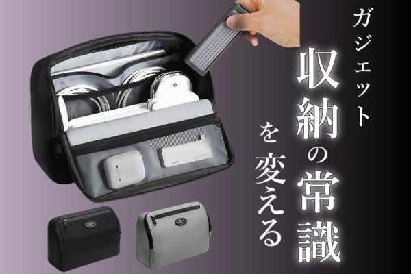 モバイルバッテリー、充電ケーブル、イヤホン、ゲーム機などのガジェット類や小物を収納するコンパックなのに多機能&大容量ポーチです。