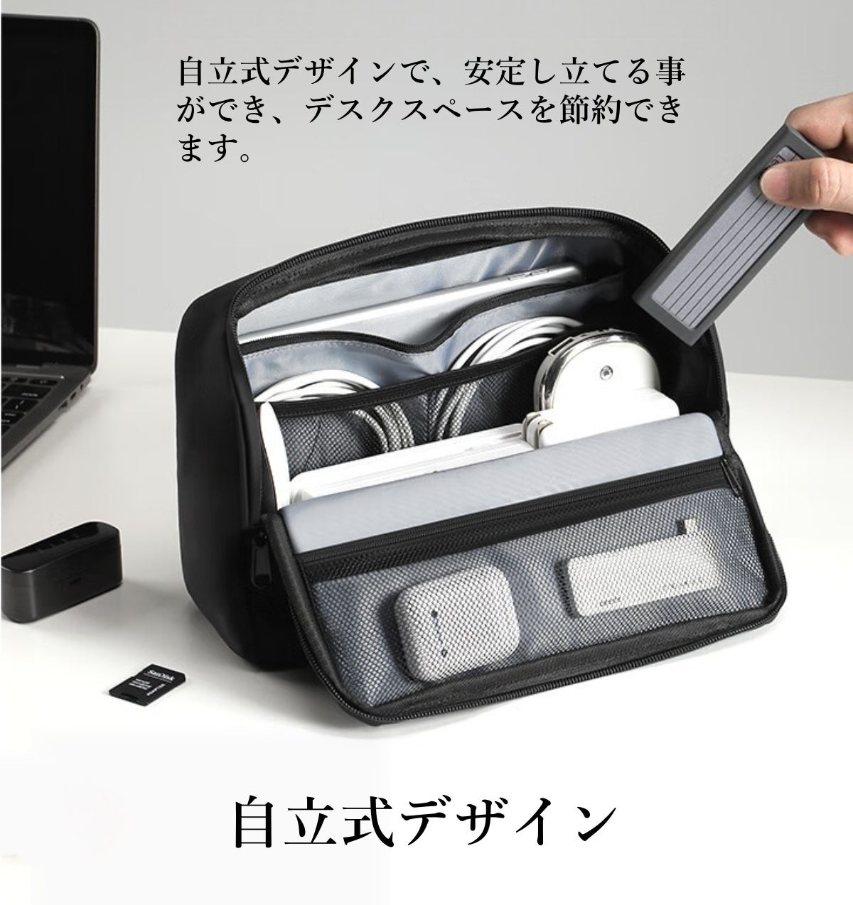 散らかりがちなデスク周りやバッグの中を整理し、自立式デザインで、安定して立てることができ、デスクスペースを節約できます。