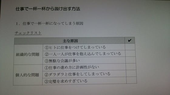 仕事で一杯一杯な状態から抜け出す方法に関するノウハウをまとめた資料(PDFファイル)を作成しました。