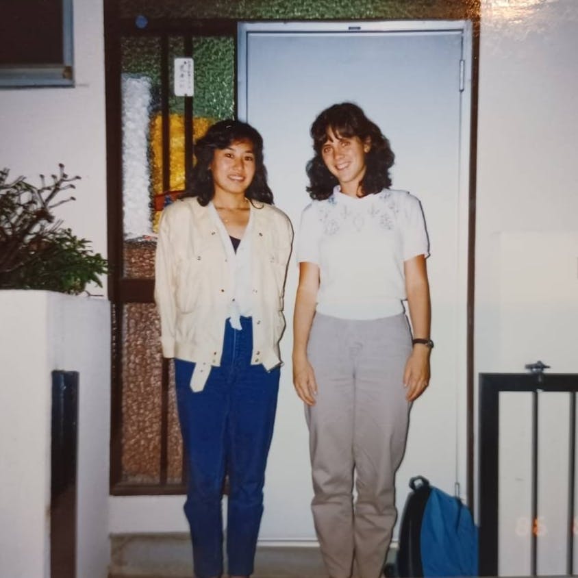 2025/10/30 12:14メーベンとの出会いは5歳くらい。ある日、いつもの野原でシロツメクサやクローバーを摘んでいた時、金髪で青い目のメーベンがいました。私達は言葉は交わさなかったけど、一緒に花を摘みました。翌日幼稚園に行くと、なんと昨日一緒に遊んだメーベンが入園して来たじゃないですか!「昨日一緒に遊んだじゃん!」(←心の声)それから毎日遊ぶようになりました。近所の公立小学校でも一緒でした。小学校の卒業とともに、彼女はお父さんの仕事(牧師)の都合で、アメリカに帰ってしまいました、、、涙あれから私達は、お互いの誕生日にささやかなプレゼントやカードを贈り合い、今もそのやり取りが続いています。この写真は、24歳の時にメーベンが来日した時のもの。私が貸りていた部屋の前での写真だから覚えています。 もっと見る