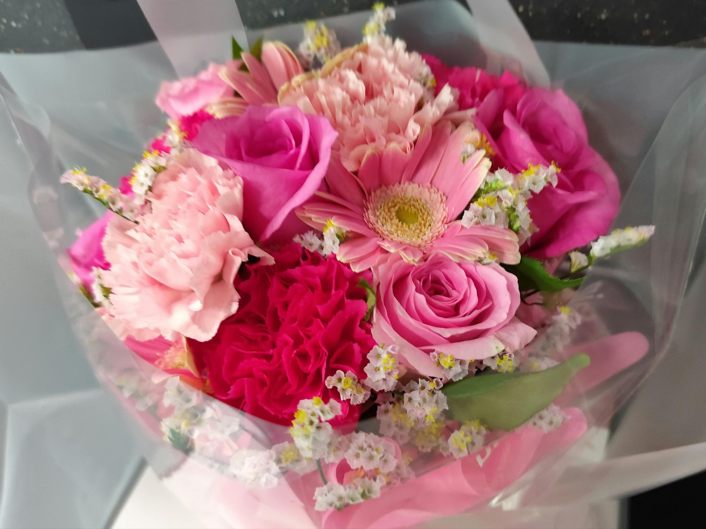 先生が入居されている施設に出向くと、先生はメーベンと会えるのをすごく楽しみにしてて、再会に涙を流されました。写真は先生に贈った花束です。