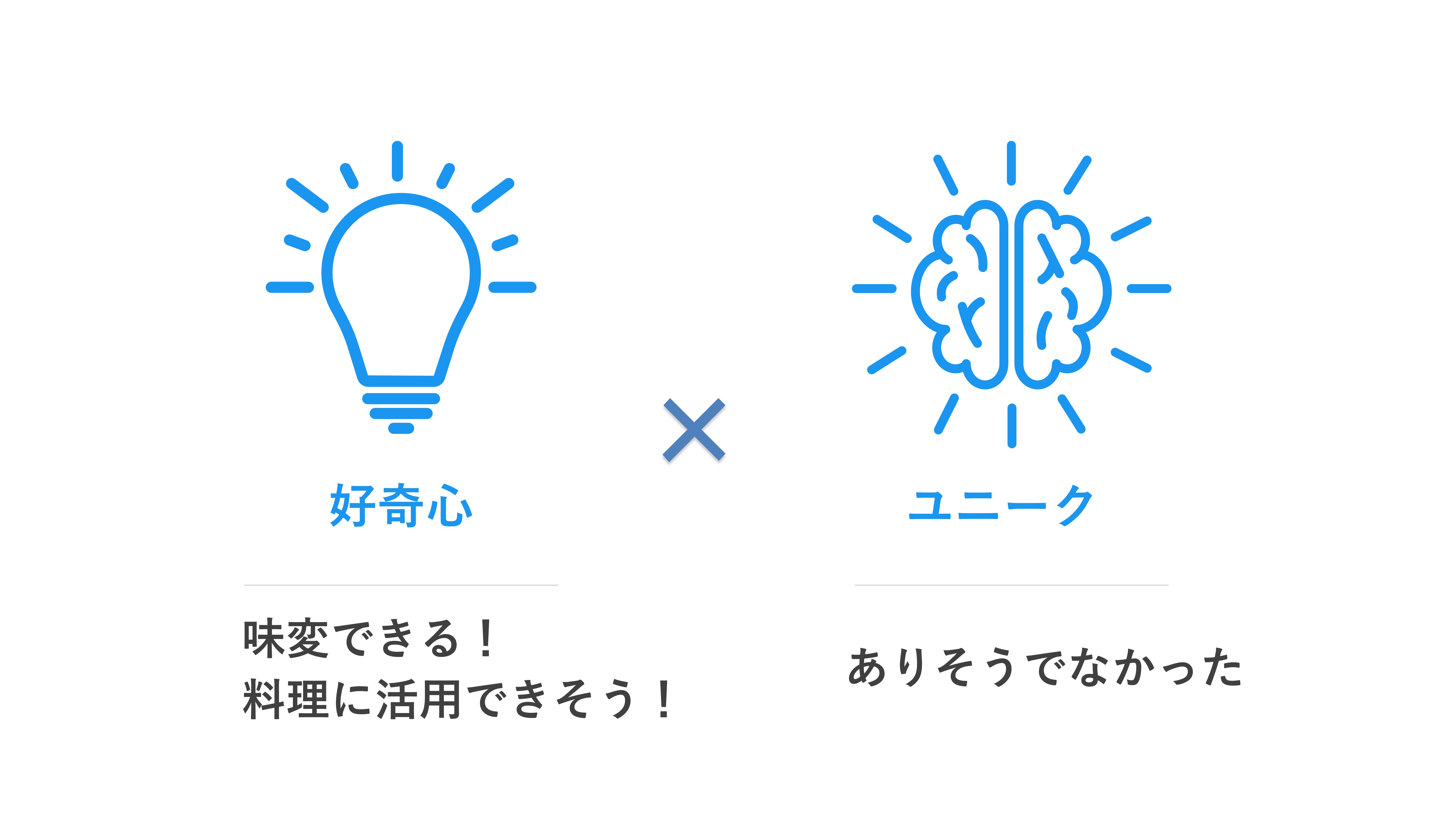 マヨネーズ界の常識を覆し、日本の食卓をもっと面白くする。その使命を果たす為、発明協会奨励賞を受賞した「エキス油の製造方法」という特許技術を使い新たな食材で挑戦します。