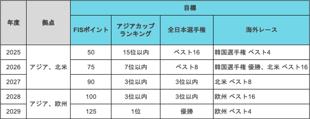 ⽬標:アジアカップランキング3位以内かつFISポイント125以上保持 → W杯個⼈出場権取得
