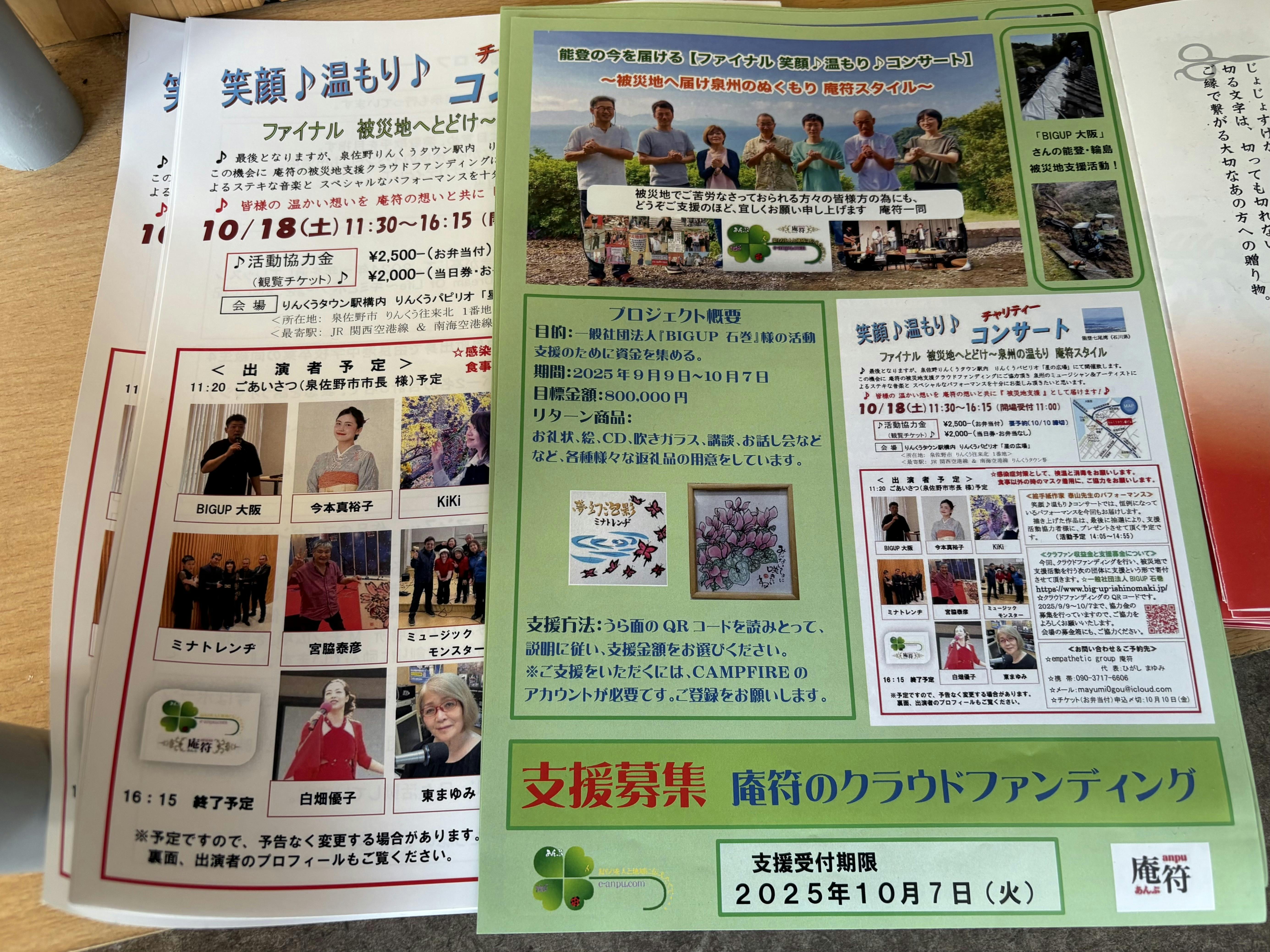 今日も3名の方々から、ご支援と応援を頂きました。9月16日にスタートしてから1週間、毎日誰かが支援してくださいます。もう嬉しくて、嬉しくて。感謝しかありません。昨日も、知り合いのお店にクラファンのチラシを置かせて貰いに伺いました。快く、「良いよ。頑張ってね。」と温かいお言葉を頂きました。本当にたくさんの方に支えられていると感じる庵符です。皆様の応援に答えられるように、庵符活動をできる限り広報していき、少しでも多くの支援金を送りたいなと願う毎日です。クラファンの活動期間はあと2週間です。これからも頑張っていきますので、皆様のご支援と応援をよろしくお願いいたします。庵符スタッフ 一同