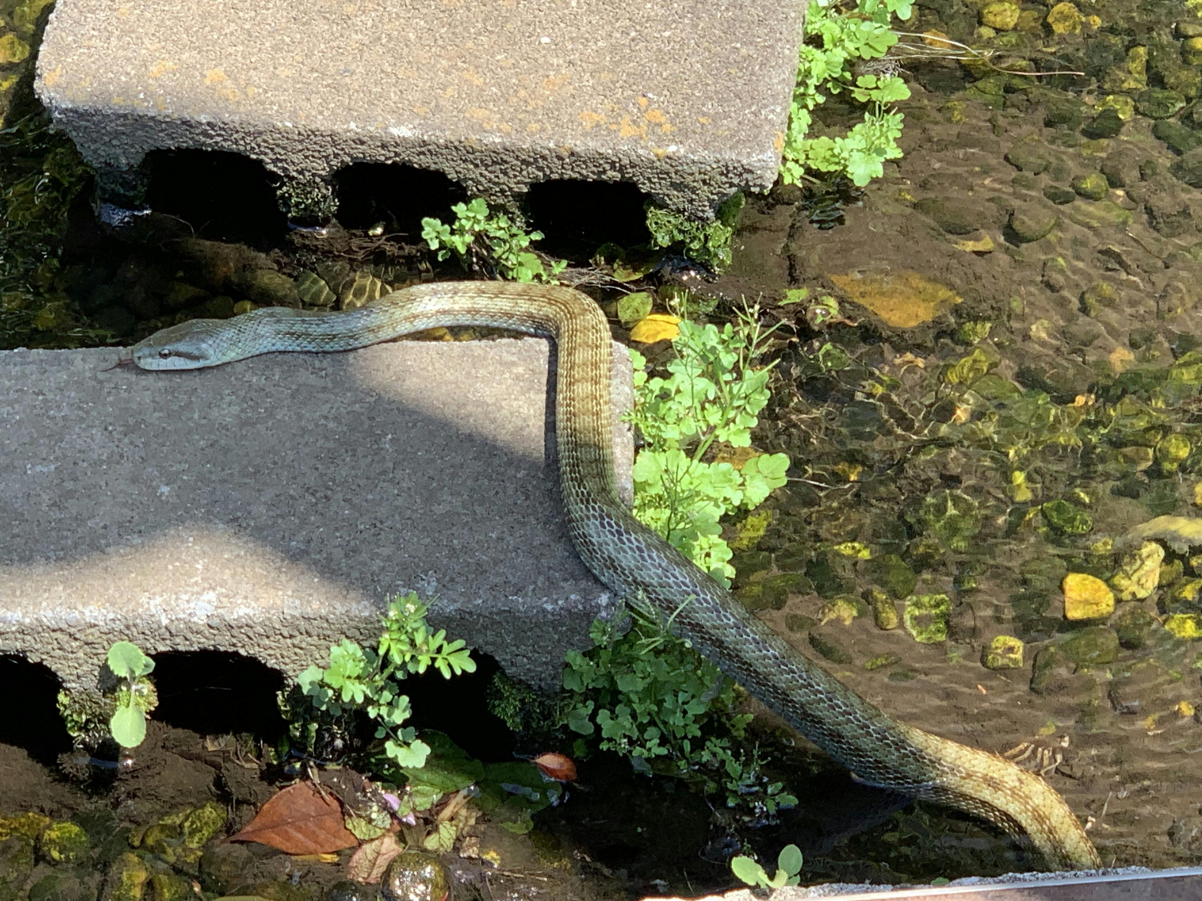 今日はスマイルなヘビ君のお話しです。 近所の緑道は、四季折々の草花と、小川が流れてます。 育ち過ぎた?鯉は、背中が水上にはみ出し、 その姿が愛らしく、彼らを探しながら歩く事も多い。 今日は雨混じりで涼しく、行き詰まった仕事のデジタルデトックスの散歩中。。。はた。岩場にヘビがいる! ゆっくり、ぺろぺろと舌を出して、ただそこにいる感じ。 あれ??ヘビを見た時、まずはギャーって驚くんじゃ? それは実際の彼らを知らない状態で覚えた概念? (もちろん、毒を持つ種は正しく恐れる事が重要)今日もまだまだ夏日で、誰しもが半袖で歩いている。「このヘビくんも 暑くて涼みに出てきたのかなあ??」 って、つぶやいたんです。自然と。驚きもしなかった。 こんな大都会の中で、お互い、泣いたり、笑ったりしながら、 自分の毎日を、ただ生きているんだな という 同じ生きるものとしてのリスペクトを感じ、 とっても、とっても、幸せな気分を感じたのです。爬虫類さんって、そもそもがスマイル!なお顔をしてますしね。ヘビくん。ありがとう、出逢ってくれて。