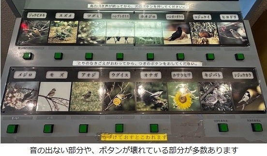 鳥の博物館では、開館当初から設置している鳴き声装置が来館者に人気ですが、ボタンが反応しないことや鳴き声がならないことが多くなっています。
