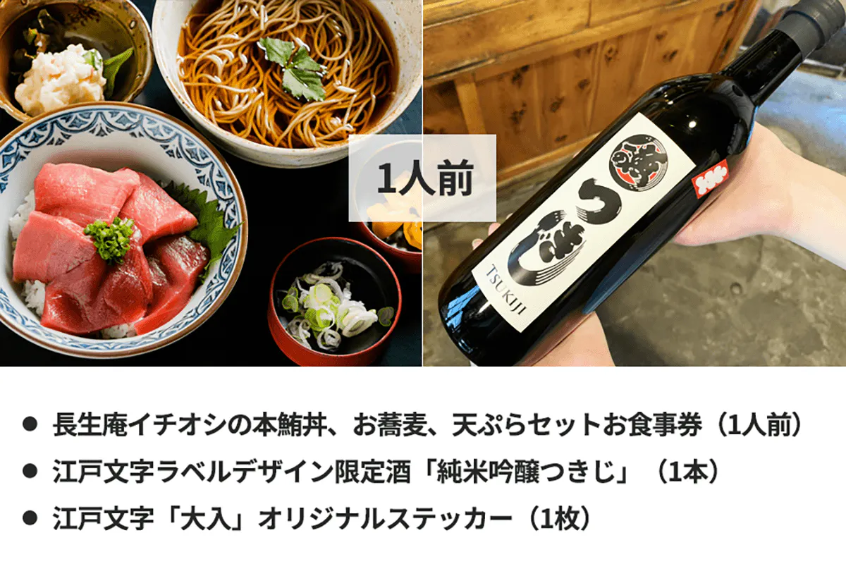 【築地長生庵 人気の本鮪丼、お蕎麦、天ぷらセットお食事券(2人前)&クラファン限定酒 純米吟醸つきじ】