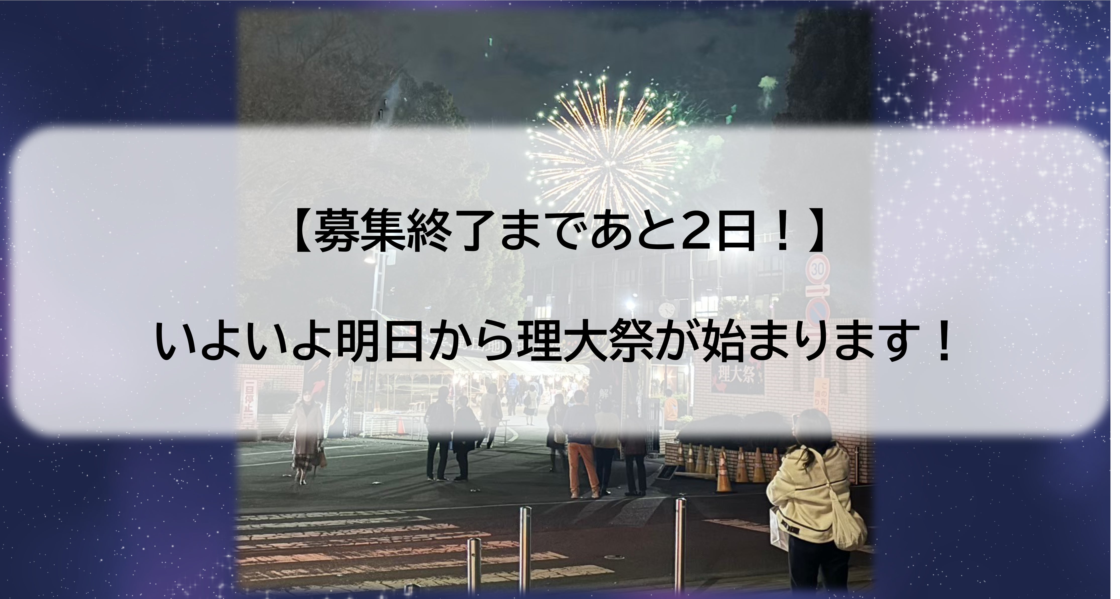【募集終了まで残り2日!】いよいよ明日から理大祭が始まります!