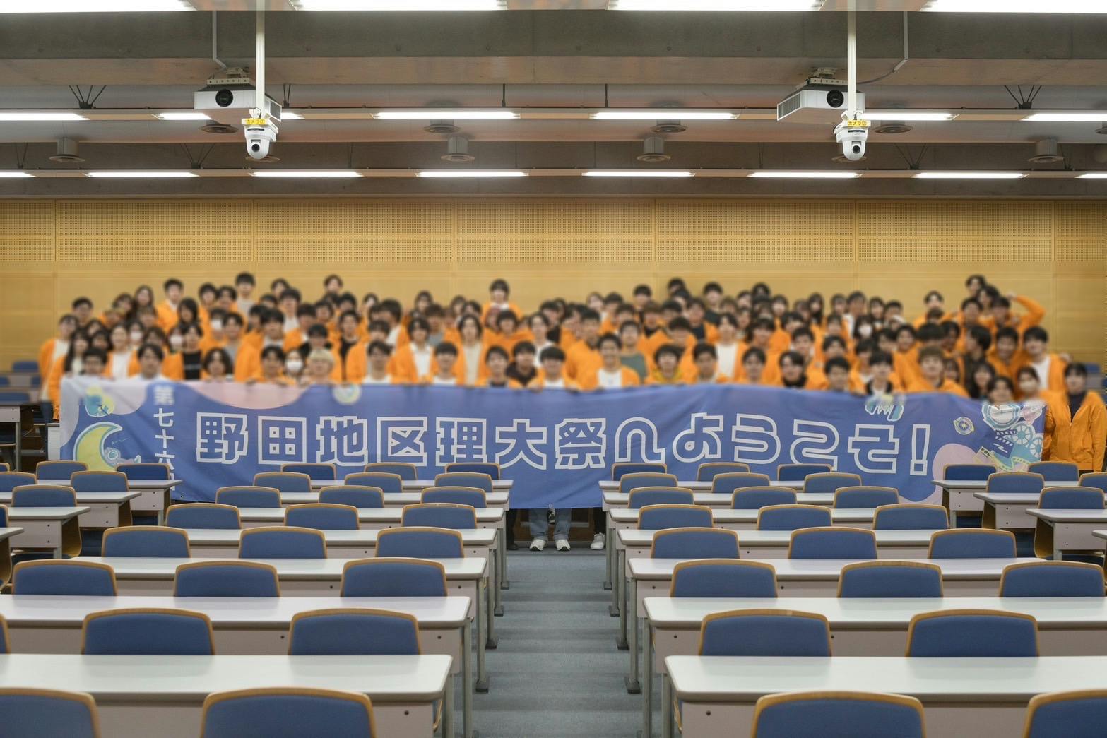 本ページをご覧いただきありがとうございます。東京理科大学野田地区理大祭実行委員会です。私たちは毎年秋頃に開催される学園祭「理大祭」に向けて、100以上の団体の取りまとめ、実行委員会企画の運営、Webサイトの開発、理大祭の宣伝、資金の調達などのすべてを自らの手で行っております。