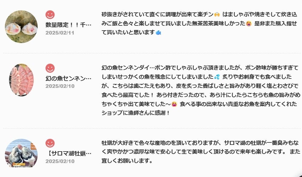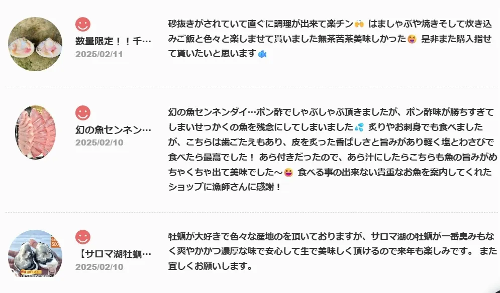 個人の漁師さんが多く、「今日は潮が強い」「水温が変わった」など、リアルな漁の声がLINEでリアルタイムに届きます。